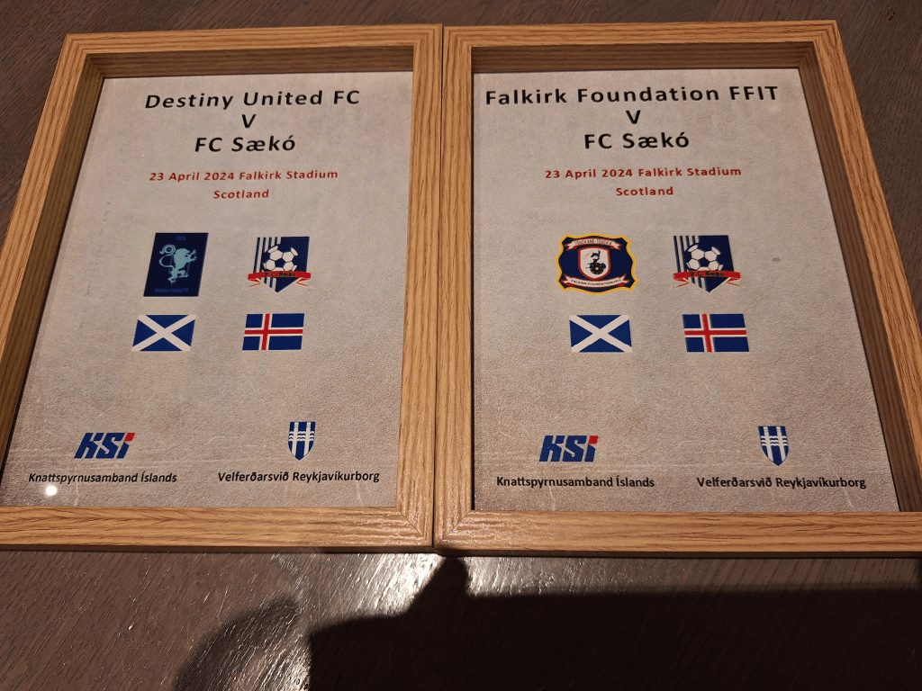 Gestgjafarnir í Falkirk tóku einnig einstaklega vel á móti liðinu og sýndu hlýju og virðingu – meðal annars með því að gefa liðinu treyjur og ýmsa muni.